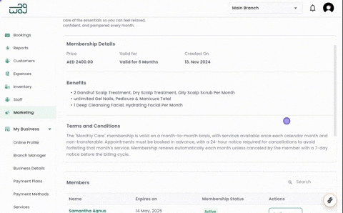 WAJ membership feature gives your salon the flexibility to design tailored membership plans, allowing clients to enjoy regular, personalized services like facials, hair care, and more on a schedule that fits their needs. It’s a simple method to give clients an easy way to commit to consistent self-care with recurring membership options. It’s a win-win: happier clients and a thriving business!